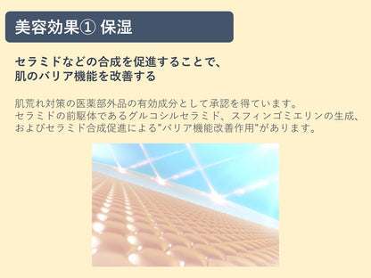 - セラミドを増やしバリア機能を強化、潤いアップ