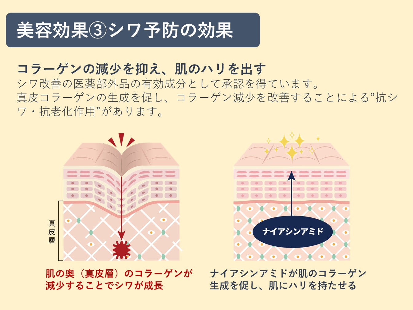 - コラーゲンの生成を促し、シワを改善